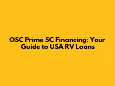 OSC Prime SC Financing: Your Guide To USA RV Loans