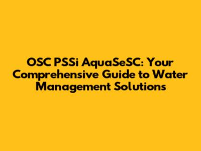 OSC PSSi AquaSeSC: Your Water Management Partner