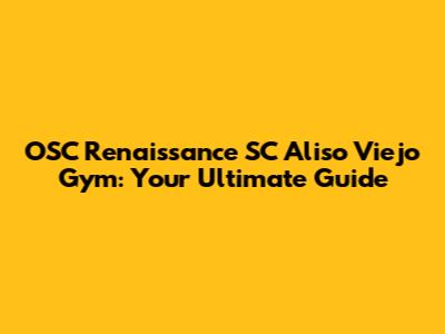 Hey fitness enthusiasts! Are you on the lookout for a top-notch gym in Aliso Viejo that'll help you crush your goals? Look no further than OSC Renaissance SC Aliso Viejo Gym. This place is more than just a gym; it's a vibrant community where you can sweat, get stronger, and feel amazing. Let's dive into everything you need to know about this awesome facility.