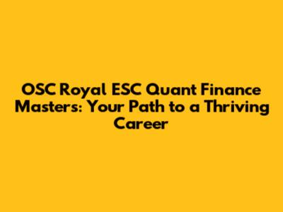 OSC Royal ESC Quant Finance Masters: Your Path To A Thriving Career