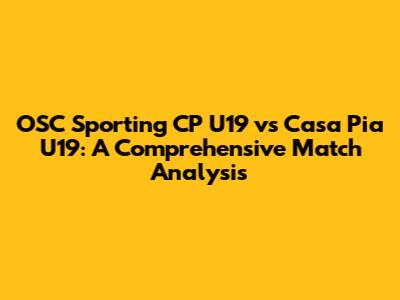 OSC Sporting CP U19 Vs Casa Pia U19: Match Analysis & Insights