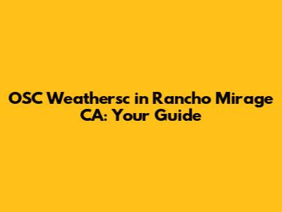 Hey guys! Ever find yourself wondering about OSC Weathersc in Rancho Mirage, CA? You're not alone! This guide is here to give you the lowdown on what OSC Weathersc is all about in this sunny California city. We'll dive into understanding what it represents, its significance in the area, and why it matters to the residents and businesses of Rancho Mirage. Get ready to explore everything you need to know about OSC Weathersc!