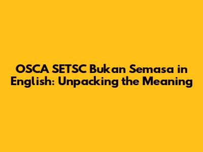 Hey guys! Ever stumbled upon "OSCA SETSC Bukan Semasa" and scratched your head, wondering what in the world it means? Well, you're not alone! It's a phrase that often pops up in the context of Malaysian government services, particularly when dealing with land matters and property transactions. So, let's break it down and get you up to speed. In English, "OSCA SETSC Bukan Semasa" translates to something along the lines of "OSCA SETSC Not Current." But, what does "OSCA SETSC" even stand for? And more importantly, what does it mean for you? Let's dive in and explore this in detail, making sure you understand everything. Don't worry, it's not as complicated as it sounds. We'll make it super easy to grasp, so you can navigate these situations with confidence. We'll cover the meaning of each word, the implications, and what to do if you encounter this term. This is your guide to understanding "OSCA SETSC Bukan Semasa" and ensuring you're well-informed when dealing with related matters. Ready to become an expert? Let's get started!