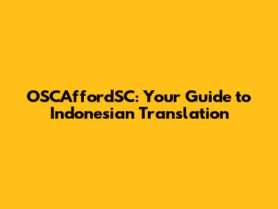 OSCAffordSC: Your Guide To Indonesian Translation