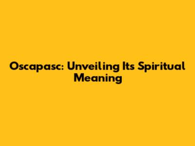 Oscapasc: Unveiling Its Spiritual Meaning