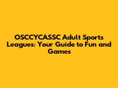 OSCCYCASSC Adult Sports Leagues: Your Guide To Fun And Games