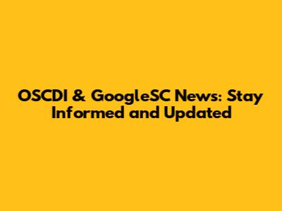 OSCDI & GoogleSC News: Get The Latest Updates