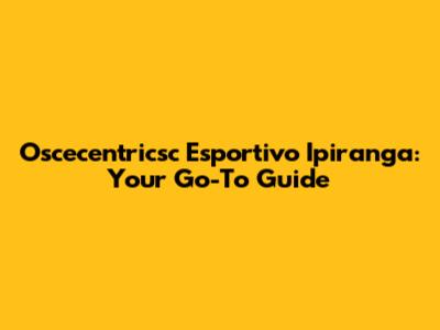 Oscecentricsc Esportivo Ipiranga: Your Go-To Guide