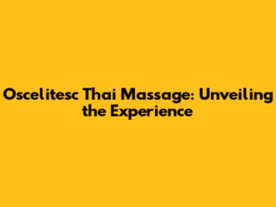 Oscelitesc Thai Massage: Unveiling The Experience