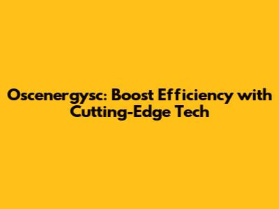 Oscenergysc: Boost Efficiency With Cutting-Edge Tech