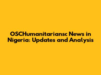 OSCHumanitariansc News In Nigeria: Updates And Analysis