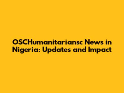 OSCHumanitariansc News In Nigeria: Updates And Impact