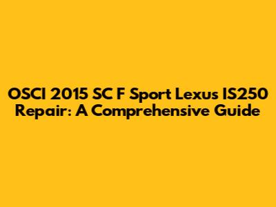 OSCI 2015 SC F Sport Lexus IS250: Ultimate Repair Guide