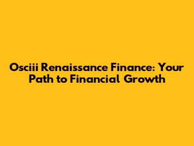 Osciii Renaissance Finance: Your Path To Financial Growth
