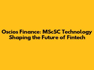Oscios Finance: MScSC Technology Shaping The Future