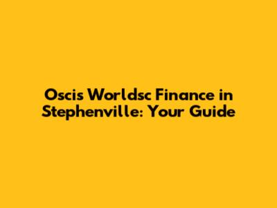 Oscis Worldsc Finance In Stephenville: Your Guide