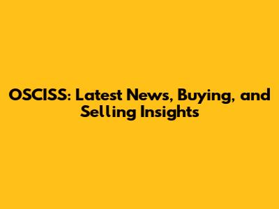 OSCISS: Latest News, Buying, And Selling Insights