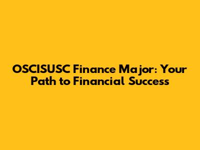 OSCISUSC Finance Major: Your Path To Financial Success