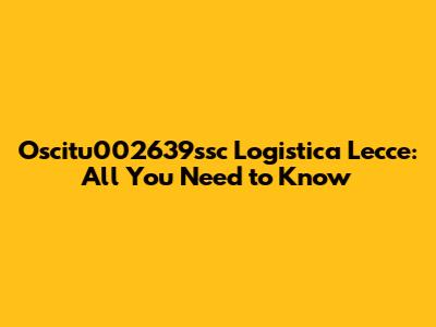 Oscitu002639ssc Logistica Lecce: All You Need To Know