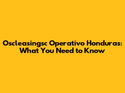 Oscleasingsc Operativo Honduras: What You Need To Know