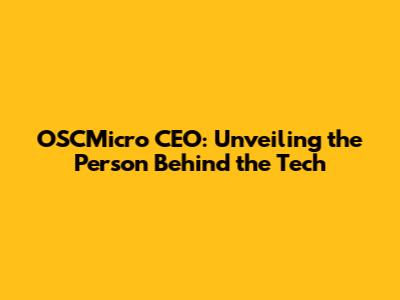 OSCMicro CEO: Unveiling The Person Behind The Tech