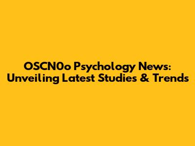 OSCN0o Psychology News: Unveiling Latest Studies & Trends