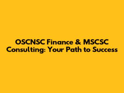 OSCNSC Finance & MSCSC Consulting: Your Path To Success