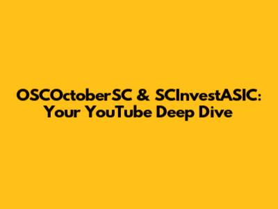 OSCOctoberSC & SCInvestASIC: Your YouTube Deep Dive