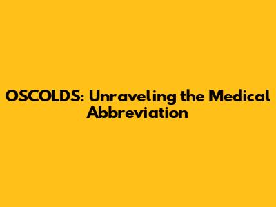 OSCOLDS: Unraveling The Medical Abbreviation