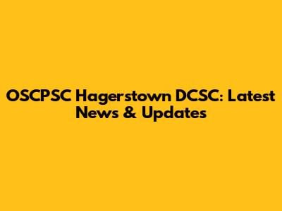 OSCPSC Hagerstown DCSC: Latest News & Updates