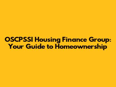 OSCPSSI Housing Finance Group: Your Guide To Homeownership