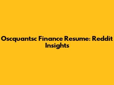 Oscquantsc Finance Resume: Reddit Insights