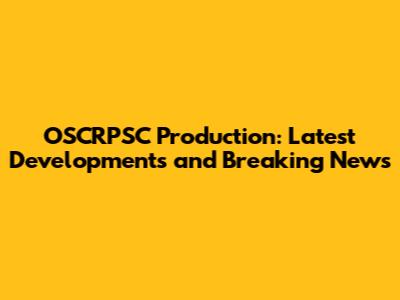 OSCRPSC Production: Latest Developments And Breaking News