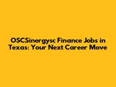 OSCSinergysc Finance Jobs In Texas: Your Next Career Move