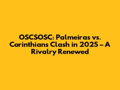 OSCSOSC: Palmeiras Vs. Corinthians Showdown In 2025