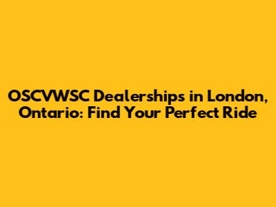 OSCVWSC Dealerships In London, Ontario: Find Your Perfect Ride