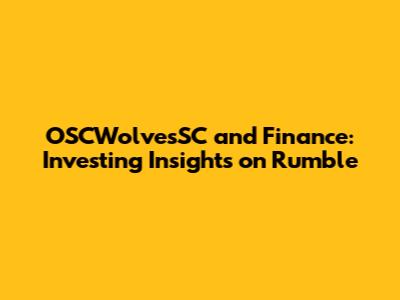 OSCWolvesSC & Finance: Investing Insights On Rumble