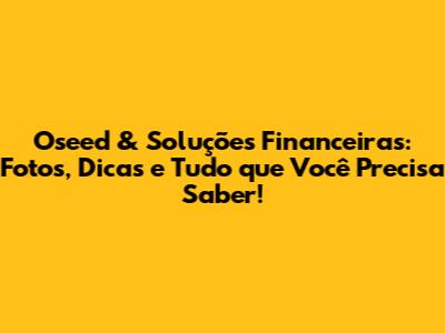 Oseed & Soluções Financeiras: Fotos, Dicas E Tudo Que Você Precisa Saber!