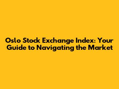 Oslo Stock Exchange Index: Your Guide To Navigating The Market
