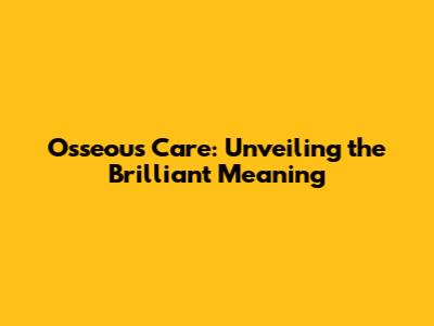 Osseous Care: Unveiling The Brilliant Meaning