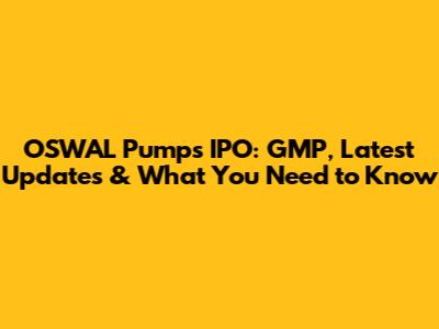 OSWAL Pumps IPO: GMP, Latest Updates & What You Need To Know