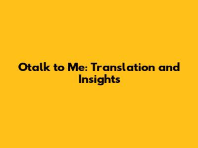 Otalk To Me: Translation And Insights