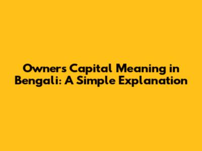 Owner's Capital Meaning In Bengali: A Simple Explanation