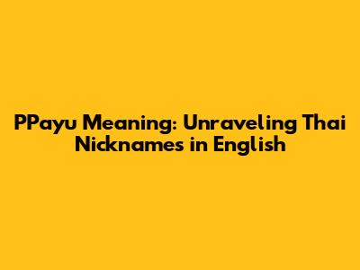 P'Payu Meaning: Unraveling Thai Nicknames In English