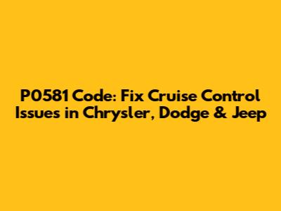 Experiencing cruise control problems in your Chrysler, Dodge, or Jeep? You might be encountering the dreaded P0581 error code. But don't worry, guys! This article breaks down what this code means, what causes it, and how you can troubleshoot and fix it to get your cruise control working smoothly again.