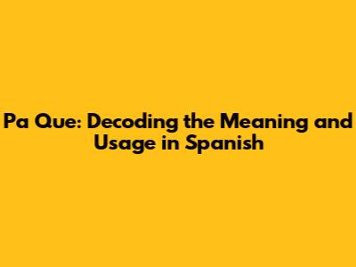 Pa Que: Decoding The Meaning And Usage In Spanish