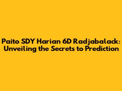Paito SDY Harian 6D: Radjabalack Insights