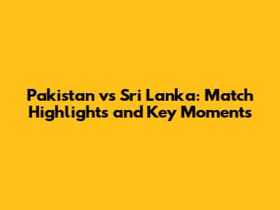 Pakistan Vs Sri Lanka: Match Highlights And Key Moments