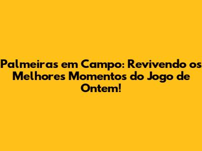 Palmeiras Em Campo: Revivendo Os Melhores Momentos Do Jogo De Ontem!