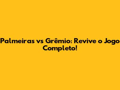 Palmeiras Vs Grêmio: Revive O Jogo Completo!